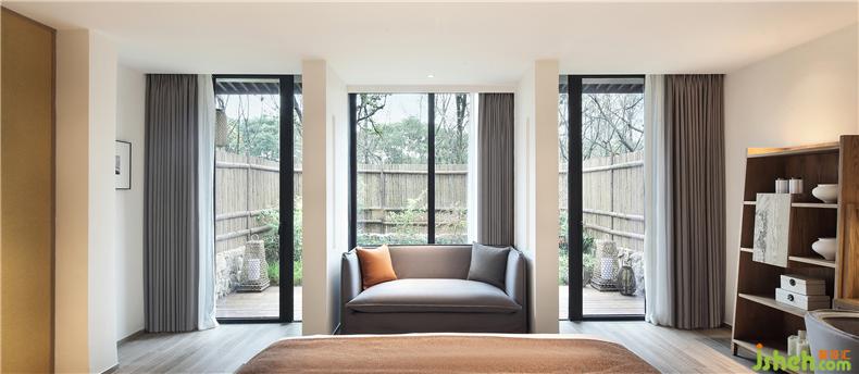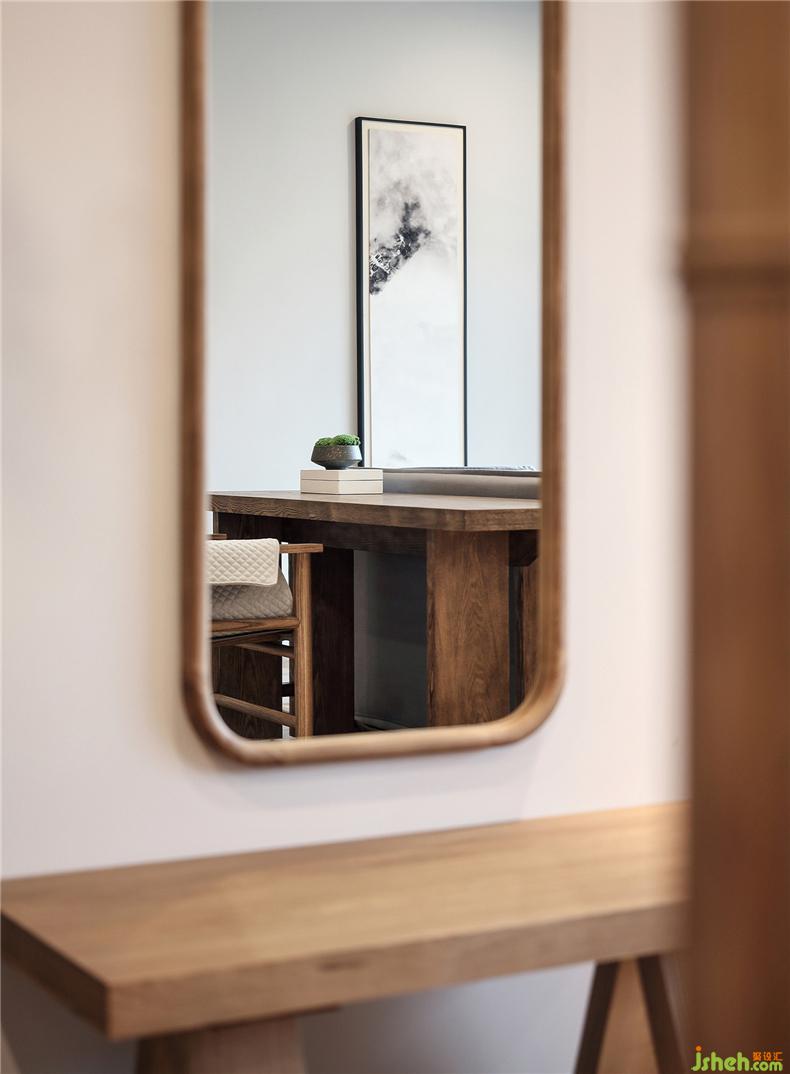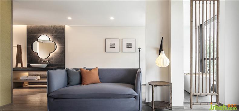 床頭藝術(shù)掛件取自“一枝獨(dú)秀”的花枝形態(tài),以此呼應(yīng)杏花居的主題?;居袝r(shí),幽居以花為伴,一室清雅,更自可愛(ài)。