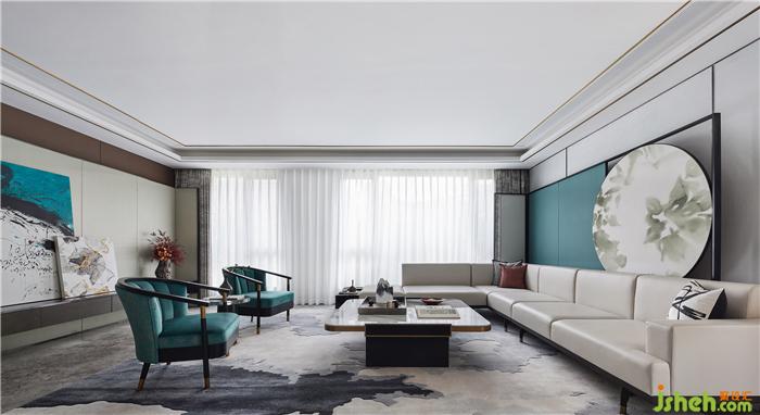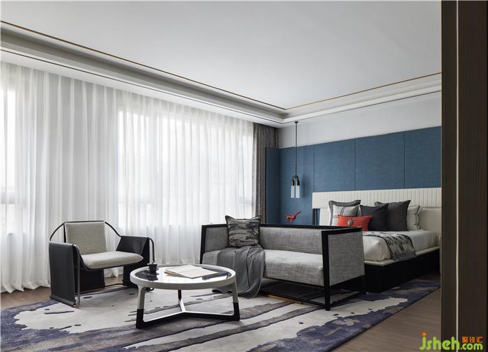 空間運(yùn)用了大量的留白手法,“扎染”空間,輔以靛藍(lán),極盡物態(tài)之美,自含寧?kù)o致遠(yuǎn)。樣板房設(shè)計(jì)
