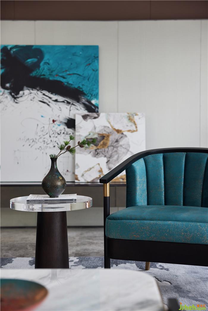 一椅、一墨、一瓶、一茶,極具東方古典美的家居陳設(shè),是本意也是天意,起身、飲茶,樣板房設(shè)計(jì)青黛流轉(zhuǎn)之余,頗有懷古通今的寫(xiě)意姿態(tài)。