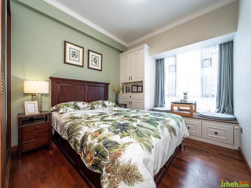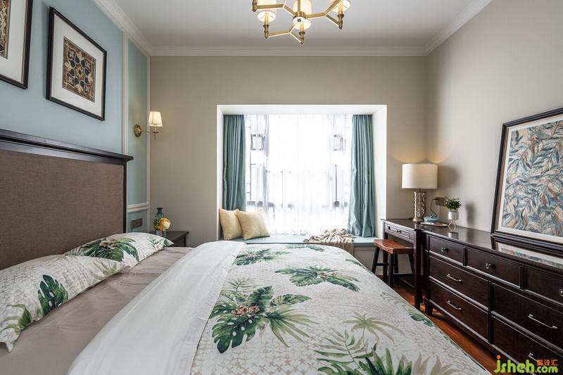 我們在設計的過程中,跳出了傳統(tǒng)的配色框架,已灰綠色床頭背景和綠色棉質床品相呼應配以黃色裝飾提亮整個空間為方便讓人平時放置一些常用藥品和物件在靠窗一側增加了一個儲物柜,并在靠窗位置設計了與原飄窗高度的儲物矮柜擴大飄窗,變成一個多功能的設計,既能儲物,又能喝茶休憩。在松軟的坐墊上,沏上一壺茶,享受午后閱讀時間,盡情沐浴溫暖陽光。