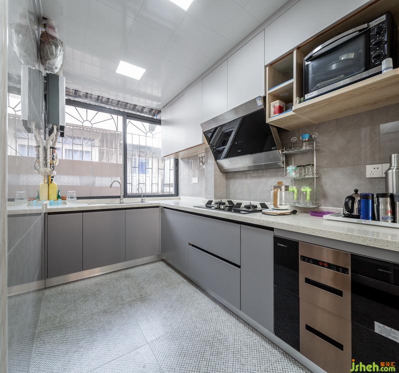 暖灰的冷靜與內斂,把廚房從繁雜的日常中抽離,空間呈現出不同于瑣碎生活的整體感覺。