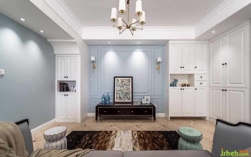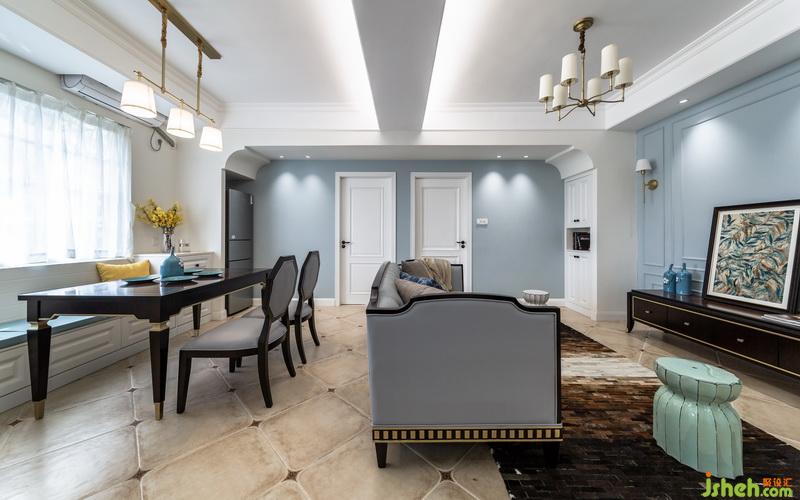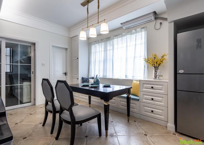 客廳和餐廳之間用沙發(fā)解決,家里不用電視,所以電視墻預(yù)留出沙發(fā)可擺放空間,讓空間擁有更多可能性,餐廳靠近窗戶位置設(shè)計一整排卡座,高低錯層的處理,滿足小空間餐邊柜的需求,靠衛(wèi)生間墻面的高柜,也可以收納一些備用洗漱用品。深胡桃木色餐桌擺上餐具便是人間煙火氣,擺上花藝、書本及家中小蘿莉的繪板亦是滿室書香及溫情。沿梁設(shè)計的造型門廊刷上整面墻灰藍色墻漆作為背景底色,暖白色燈光灑在墻面,墻面暫缺的飾品,就讓時間慢慢填滿,設(shè)計的同時留一些空間讓業(yè)主和房子共同制造回憶。