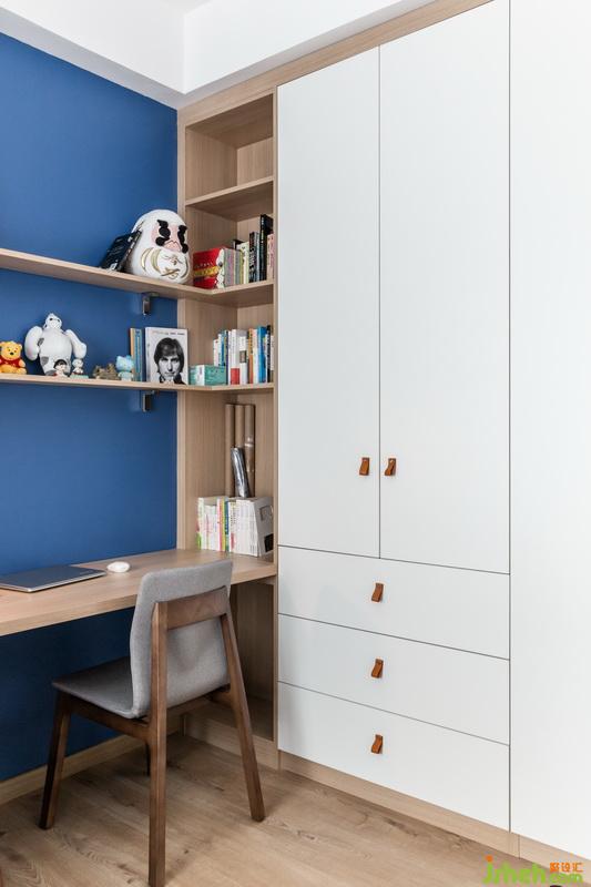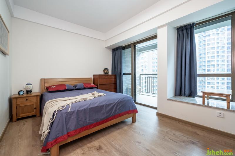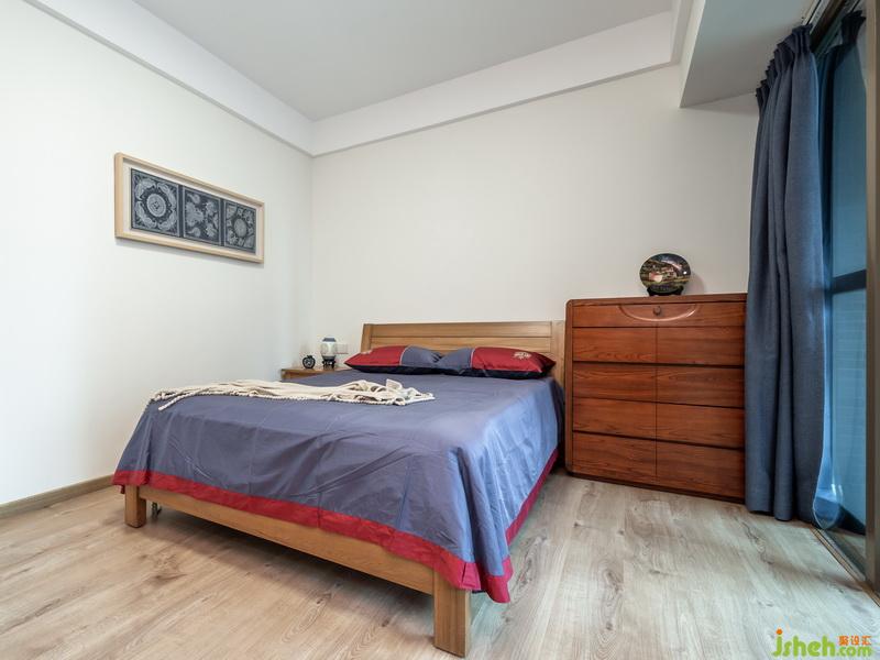 舊居帶過來的家具并不會與整體簡約格調(diào)違和,細(xì)木邊框裱好的從鳳凰帶回的蠟染、深藍(lán)色棉麻窗簾、與陪伴多年的老木頭,讓老人的新臥室穩(wěn)重又素凈。