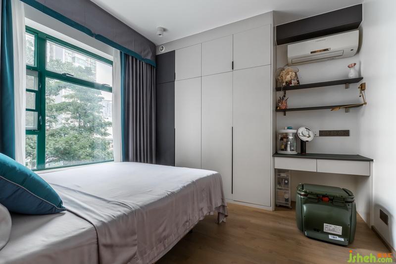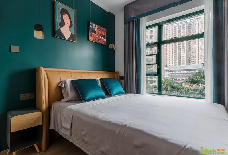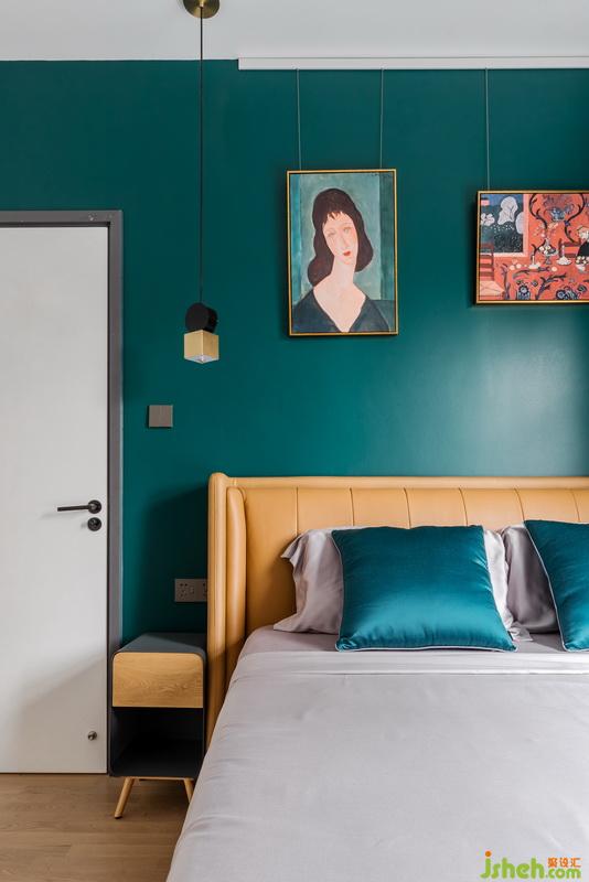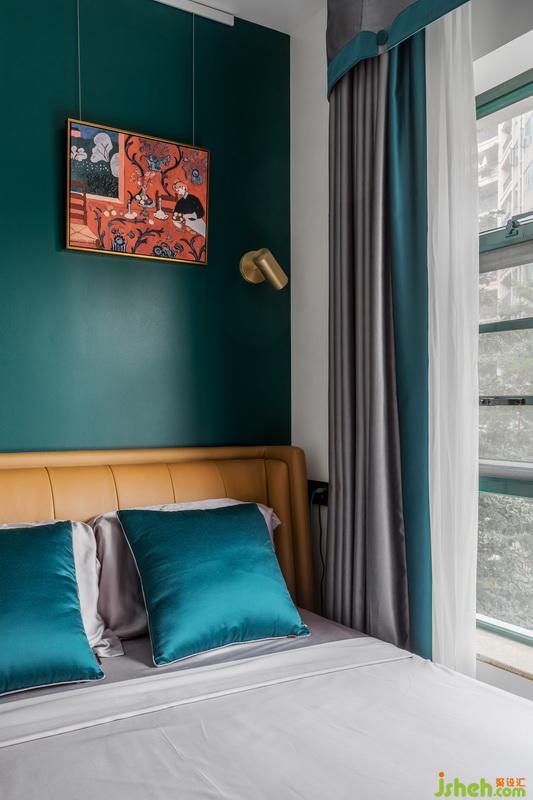 墨綠色背景顏色是女主人的最愛(ài),灰色主體墨綠邊邊窗簾與背景呼應(yīng),黃色皮質(zhì)床,軌道式油畫,一種無(wú)與倫比的高級(jí)質(zhì)感又流露了出來(lái)。