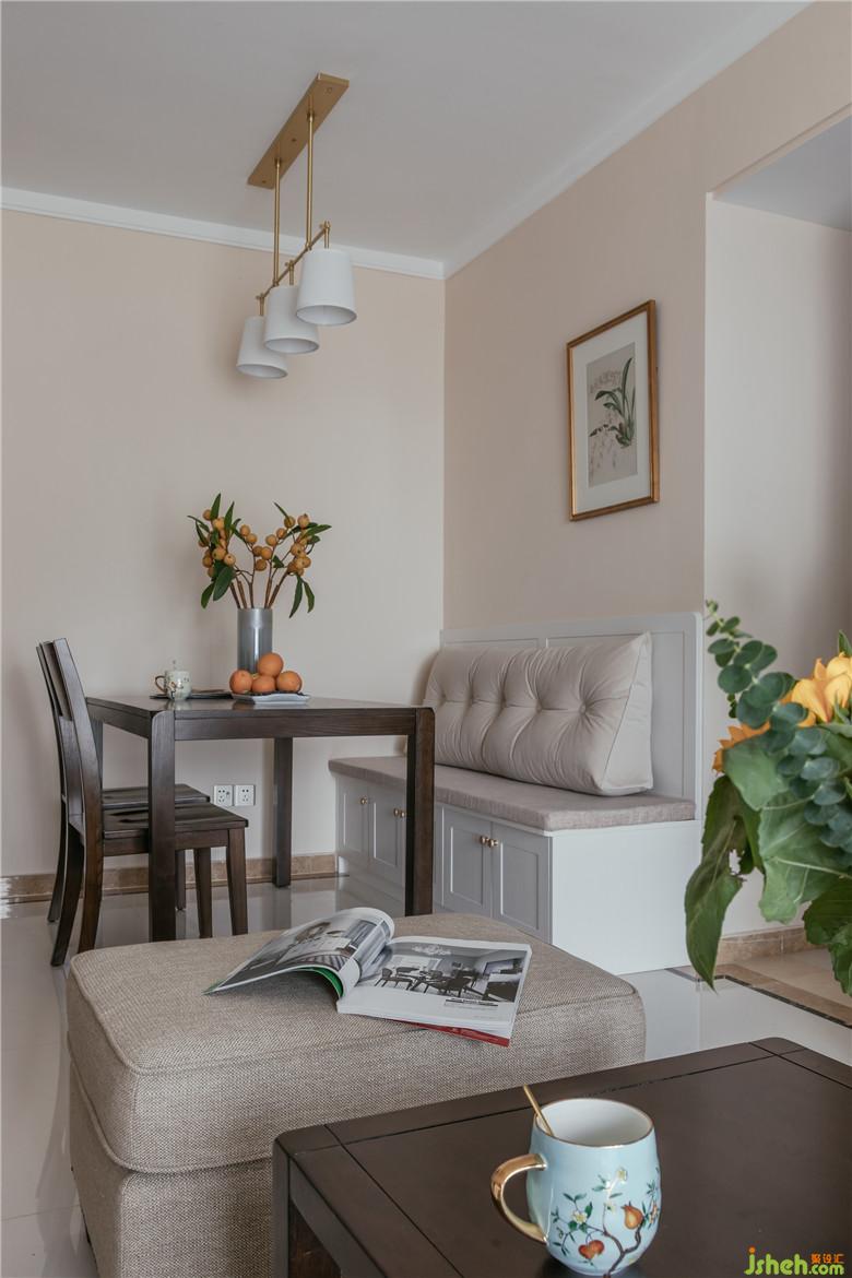 長輩房:房間原有面積不大,于是裝修公司結(jié)合飄窗做了儲(chǔ)物式榻榻米,這也是比較常見的一種處理方式,簡單簡潔,兼具美觀和實(shí)用性。床品以淺色系棉麻材質(zhì)為主,經(jīng)濟(jì)舒服。