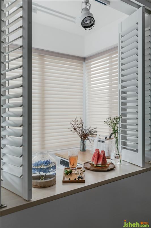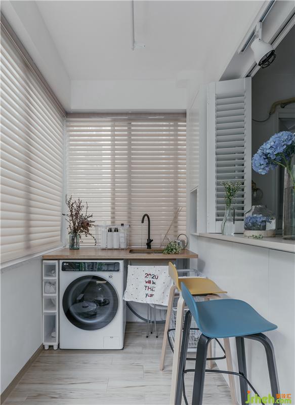 陽臺(tái),也是年輕夫妻最喜歡的角落。除了有個(gè)儲(chǔ)物吧臺(tái),實(shí)用美觀,還有一個(gè)很重要的功能就是:陽臺(tái)變成了寵物區(qū),人和寵物都有既可獨(dú)立,也可互通的空間。洗衣機(jī)和洗衣池安排在這里,使用起來非常方便。