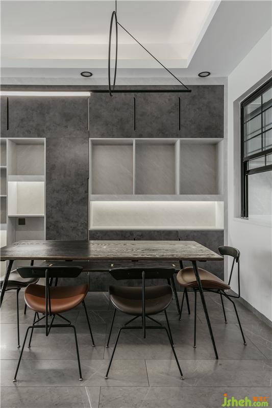 中式廚房延伸了本套案子整體所表現(xiàn)的灰調(diào) ,一如既往的干凈與明亮。
