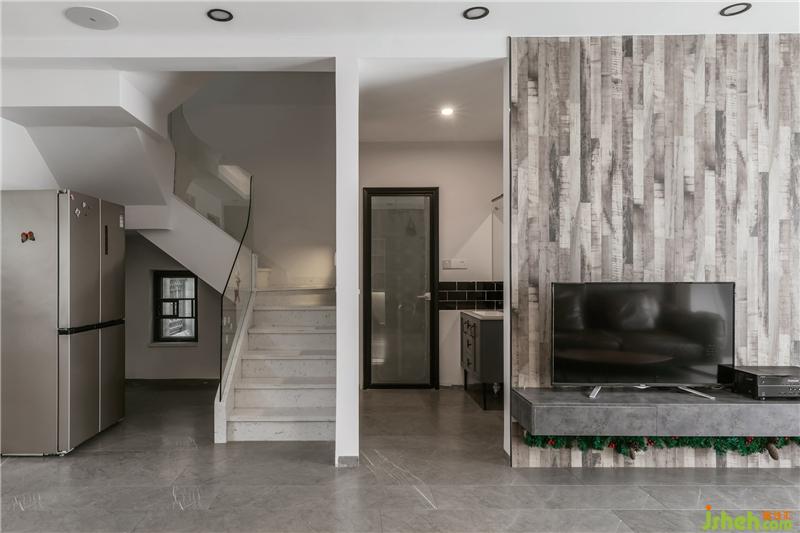 一樓的樓梯間開了一個窗洞,窗戶的設計是上下式,主要是考慮這里是通道,不能影響正常的通行,而這里的窗洞設計最初是為了增加樓梯間與窗戶后面的開放式洗手盆的通風,最后發(fā)現(xiàn)也增加空間的朦朧與美感。