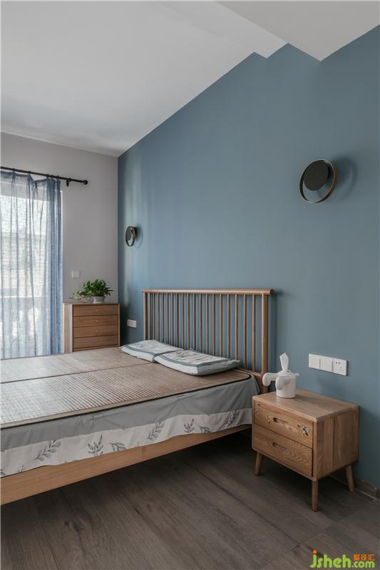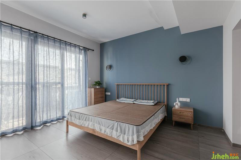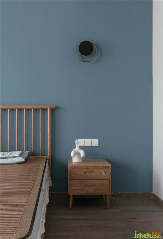灰藍色的主人房背景墻,只有小小的二個壁燈進行了點綴,這是女主人想要的空間,干凈與明亮。衣帽間左邊為女主人的衣柜,右邊是男主人的衣柜,這樣的分開大大增加了夫妻的情感,減少了爭執(zhí)的概率,哈哈哈,設計能改變生活習慣,能提高夫妻的感情,真的,不騙人。