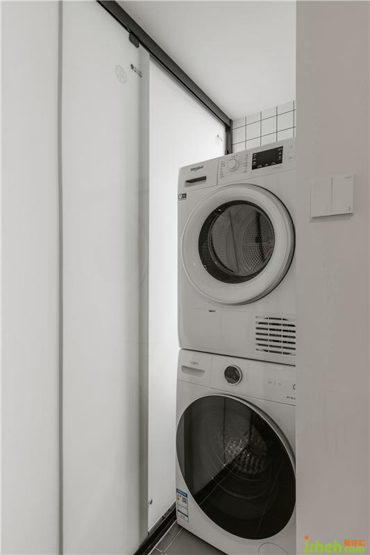 衛(wèi)生間,我們在2.5㎡里實現(xiàn)了四分離的設(shè)計??紤]了整體的效果,我們把洗衣烘衣機外置了,馬桶和淋浴區(qū)也可以單獨使用。