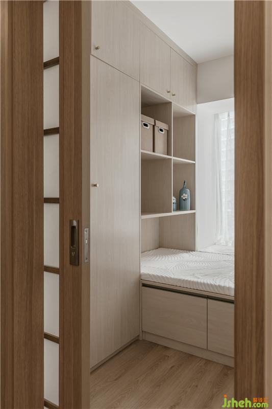因為寶寶還未出生,所以這個房間主要作為父母臨時留宿使用,因為大部分時間還是沒有人使用,所以我們主要考慮整體美觀性與實用性,榻榻米能夠滿足到整個家的收納,看起來干凈整潔。