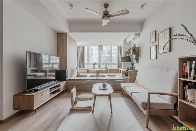 整個榻榻米增加客廳收納,后期需要拉上簾子,可以作為客人的休息區(qū),滿足了偶爾朋友留住的需求。