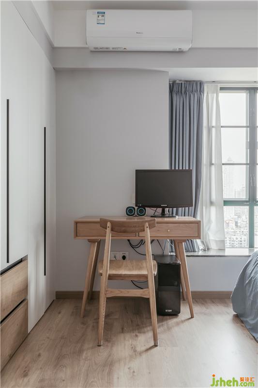 為了滿足兩個(gè)小孩的寫(xiě)作需求,往主人房的套衛(wèi)移了一點(diǎn),做了一個(gè)衣柜書(shū)桌一體柜,滿足了收納,也滿足了寫(xiě)作需求。