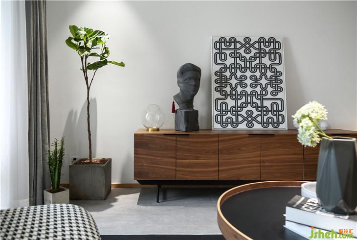 玄關(guān)一側(cè)墻體拆掉,擴(kuò)大入戶視野,并在對(duì)面增加儲(chǔ)物間存放雜物??蛷d陽臺(tái)內(nèi)包,將客廳活動(dòng)范圍增大,充分延展空間。