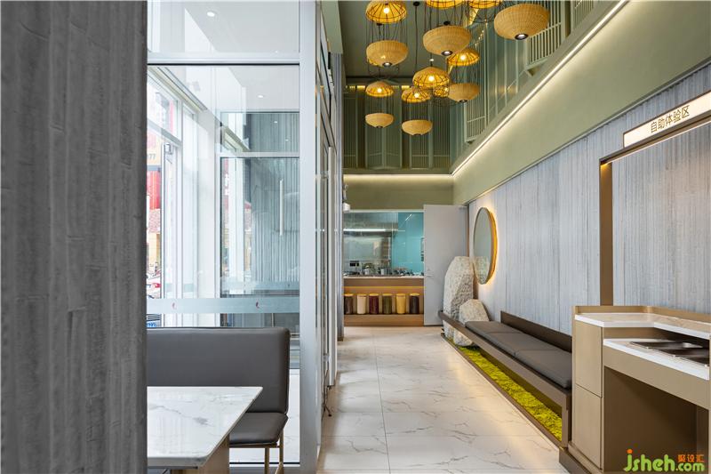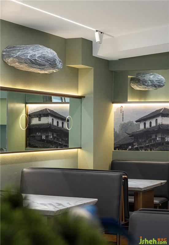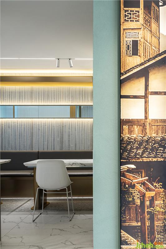 “體驗店”對餐廳設計要求極為細致,其首要功能是線上店的廚房加工點,其次才是堂食的功能,留給就餐的面積就會很精簡。為了有效的利用面積和營造絕佳的就餐體驗,我們設計團隊不斷的優(yōu)化動線和整合功能,打造了一處簡約高效、兼?zhèn)鋫鹘y(tǒng)與時尚的藝術餐廳設計空間。