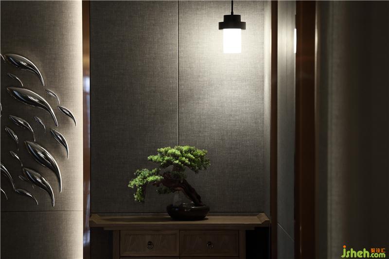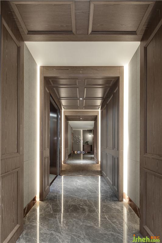 穿過走廊,金屬質(zhì)感的墻面使空間顯得更為開闊,明朗。禮賓落座,環(huán)顧四周,深淺相間的棕黃木色讓人靜心靜氣。偶有一點(diǎn)盆栽的翠綠,好像少女嘴角的美人痣。