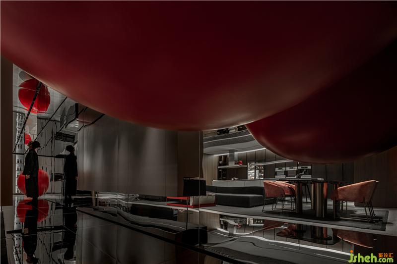 如同無處不在的紅色球體,與神秘黑色主調(diào)的設(shè)計貫穿始終,在未知與已知之間表達時間和空間,用褪去世俗的遮蔽,展現(xiàn)本真的力量。