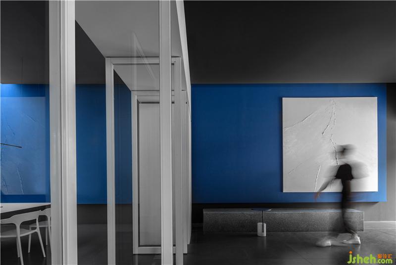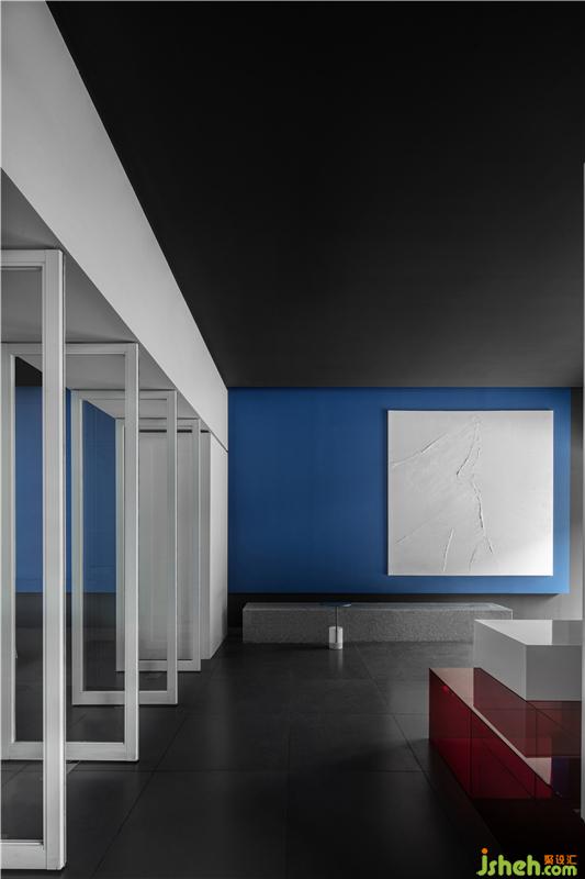 藍(lán)色交匯著紅色光影, 一切在緩緩的時(shí)間流動(dòng)中充滿了凝聚的力量,印證著在同一享受的空間里原本就沒有真正異己之物的存在。所有可透視的表象明見性,使存在本身變得不由分說,空間也由此相互獨(dú)立、融合,從而創(chuàng)造有趣生動(dòng)。