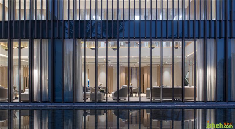 一池半海售樓處是標(biāo)準(zhǔn)的L型單體兩層建筑,整體挑高的玻璃幕墻,即便是在室內(nèi),也能把中庭的水景一覽無余。裝修公司