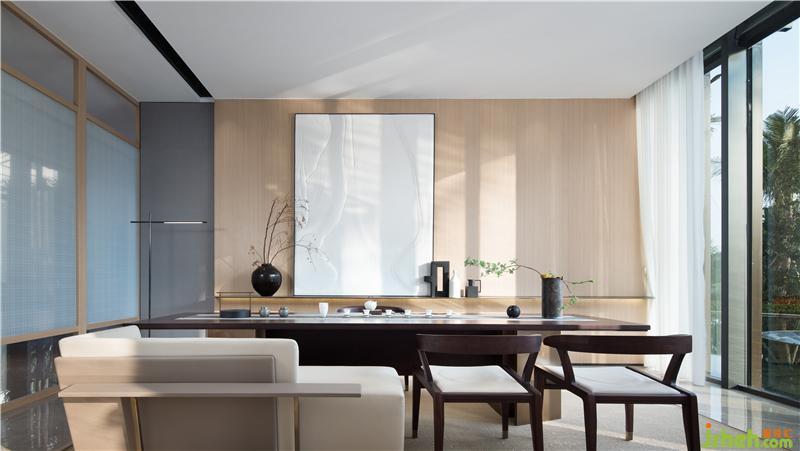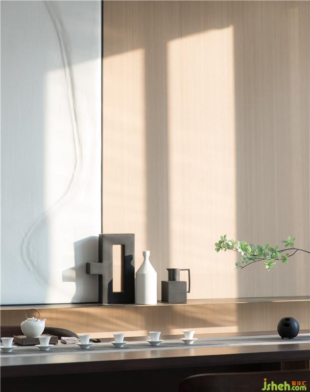 屏風(fēng)模糊了空間界限,茶室似隔似合,藝術(shù)畫(huà)的選擇以留白注解,若隱若現(xiàn)。器皿選色素雅,插花藝術(shù)更是展現(xiàn)了不一樣的空間詩(shī)意美學(xué)。文人墨客,清茶一杯,談吐風(fēng)雅;蕓蕓眾生,一茗在手,靜謐中返觀自心。