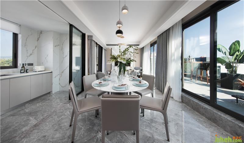 季悅之居為三室兩廳兩衛(wèi)的疊拼戶型,整體面積為142平方米??臻g主色調(diào)為淺灰色,微妙的灰色變化,層層延伸,營(yíng)造緊密而又輕盈飄逸的變化。綠植、陽(yáng)光、窗外的風(fēng)景與室內(nèi)的空間,虛實(shí)相生,交融一體。樣板房設(shè)計(jì)