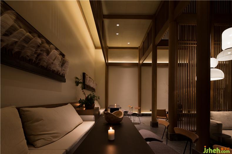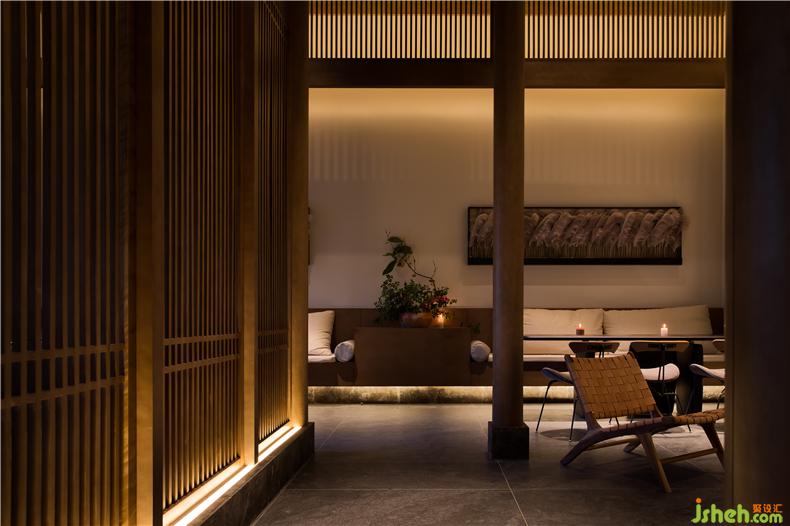 休閑區(qū)沙發(fā)位融入編織的元素,與木柵格隔斷相呼應(yīng),裝修設(shè)計(jì)家具粗狂的石材與細(xì)膩的軟包碰撞出古樸安靜的感覺(jué),做舊木制單品以及火爐裝置的點(diǎn)綴更顯漁鄉(xiāng)漁民的生活氣息。