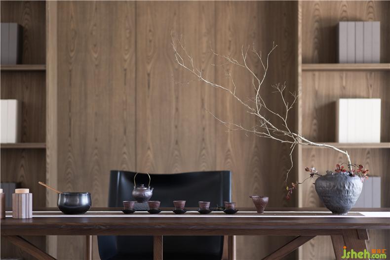 家具以樸實(shí)的實(shí)木色與莊嚴(yán)的深色皮為主,穿插著金屬的燈具,表現(xiàn)出低調(diào)的奢華感。