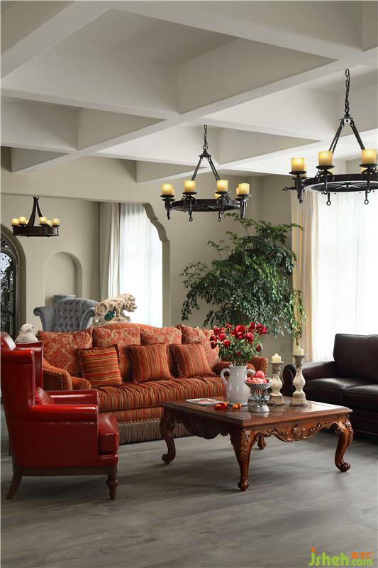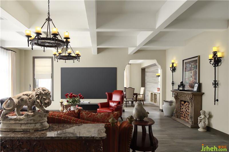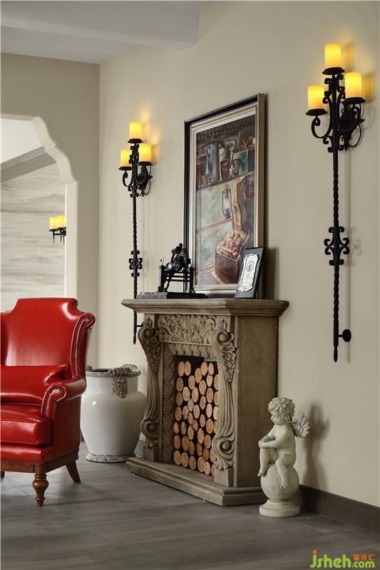 進(jìn)入軟裝搭配階段后,業(yè)主委托我尋找一款合適的壁爐放在客廳。尋遍市場仍無中意款式,直到那個雨天在庭院的角落看到了落滿灰塵的一個砂巖壁爐,眼睛立刻放光。將其清洗干凈安放到這里,再次化腐朽為神奇。油畫雖不是大師作品,但細(xì)膩的筆觸,流淌的色彩仍然堪稱經(jīng)典。淺灰木紋仿古地磚按照設(shè)計的要求切割拼貼,古樸的韻味透出了高級時尚感。
