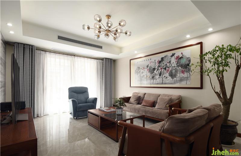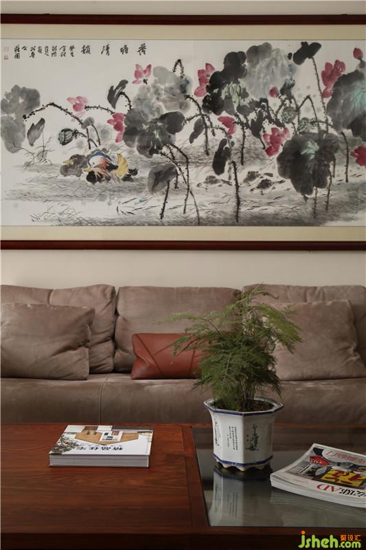 l 客廳 l 閱梨家具確實能夠將時尚東方的理念表達清楚,棗紅色木質配以金屬的配飾,精致優(yōu)雅。設計師調配的墻面色專屬此空間?;宜{的休閑沙發(fā)以小博大,掌控了空間的平衡感。大型水墨畫寫意出生活的態(tài)度。在選擇電視背景材料的時候,第一時間被這款“行云流水”打動,最終是它讓空間“流動”了起來。室內設計師