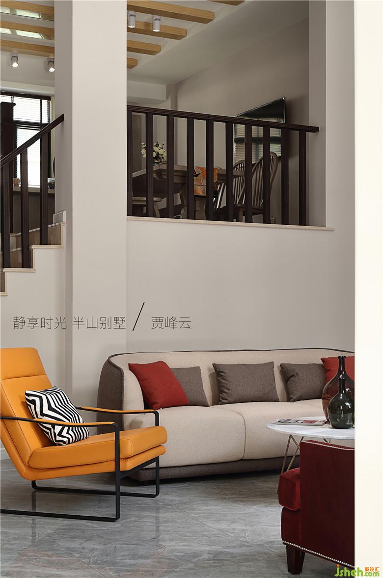邊廳設(shè)計(jì)了休息區(qū)品鑒藝術(shù) 思想交流抽象畫暗示了業(yè)主自由不鶩的心靈