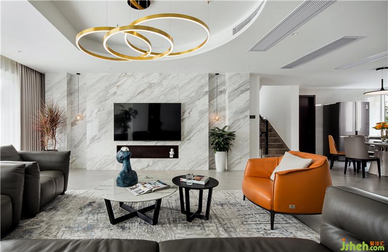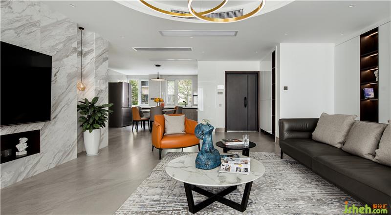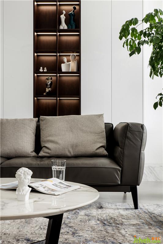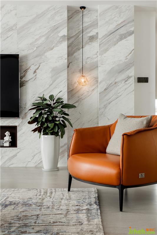 電視背景用的是老礦爵士白天然石材,我喜歡這種水墨流淌的感覺,經(jīng)典又不失時(shí)尚感,也能增加空間的藝術(shù)氛圍。