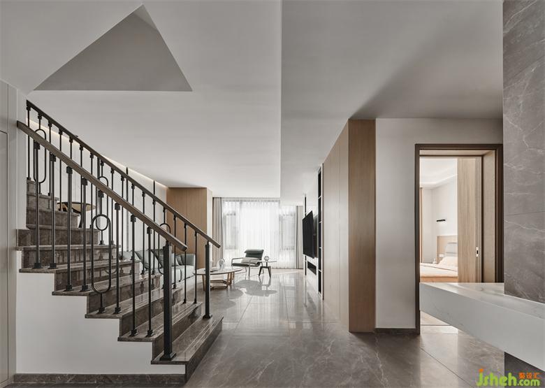 暖色調(diào)科定板墻面中和了白與灰的冷峻