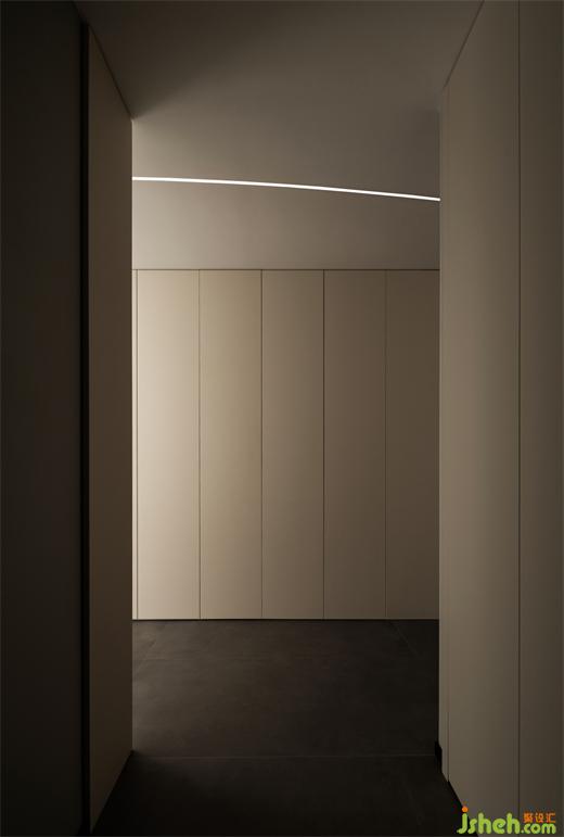 入戶開始,就用極簡柜體構(gòu)建出了深邃悠遠(yuǎn)。可以閑步游走,在走廊的每個盡頭發(fā)現(xiàn)驚喜。