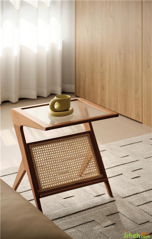 The original balcony space will be integrated into the restaurant and living room to be so open. There is a section of load-bearing wall beside the TV background, and a log color high cabinet is designed for storage. Increasing storage space also enriches the mechanism of facade.