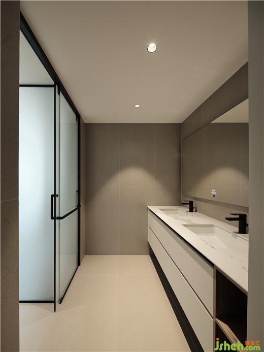 本案多處運(yùn)用平直的幾何塊面轉(zhuǎn)折空間的光影,讓居住者體驗(yàn)到有意識(shí)的空間形變。