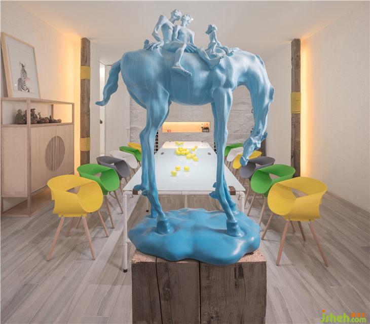 這里是辦公室,更是藝術(shù)展廳,而且雕塑作品定期更新,為參觀客人帶來新鮮的視覺體驗。