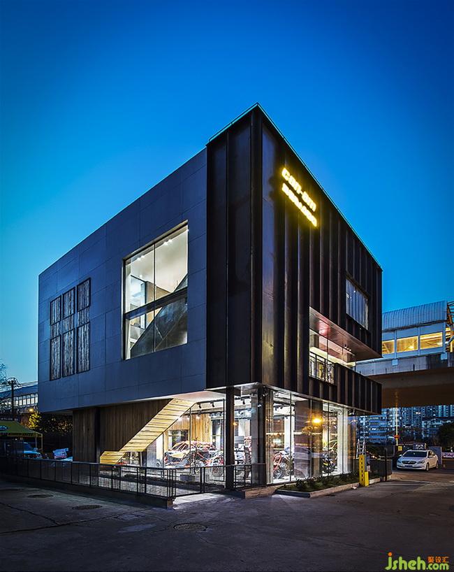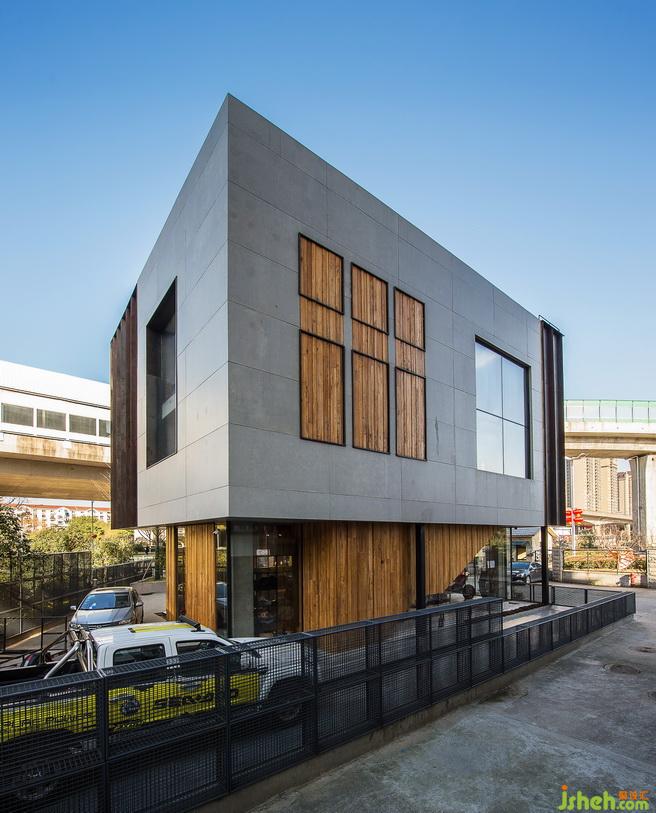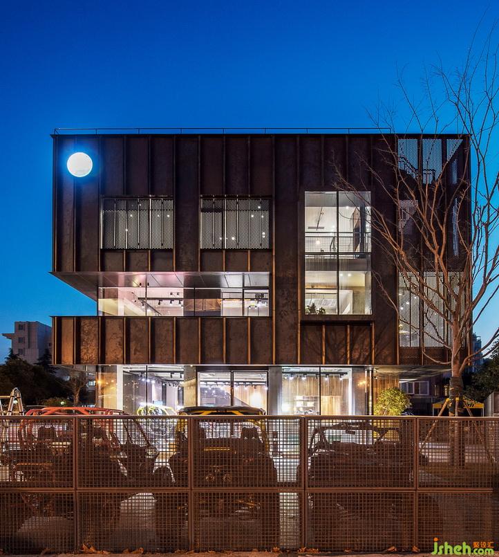 改造后的建筑,整體高度都拔高了。從遠(yuǎn)處看象是一個(gè)站立的盒子,增加了視覺(jué)的沖擊力與趣味性??v向條狀的鋼板,配合朦朧感的沖孔鋼板與扎實(shí)的水泥板,簡(jiǎn)單又直白,打破建筑原有的條條框框,從而表現(xiàn)出一種特別的空間虛實(shí)感,更加強(qiáng)了建筑的立體感。