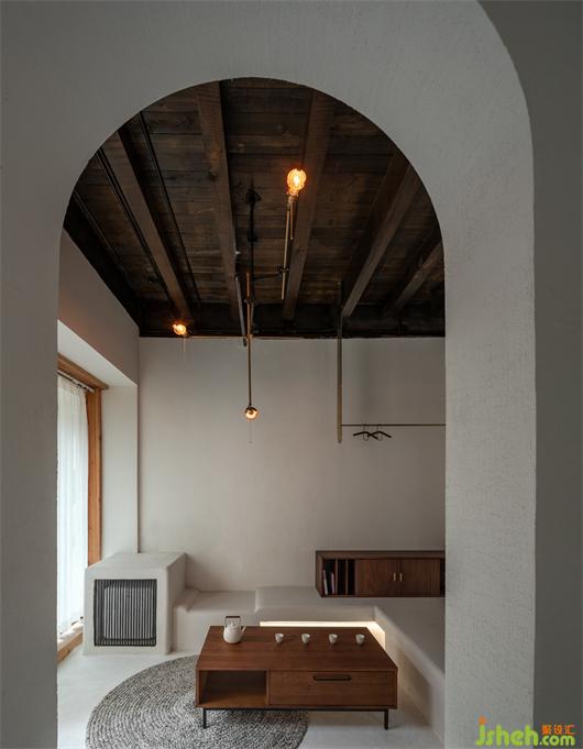 “溯”與“渡”復(fù)古懷舊,素凈的白巖墻,深棕色的原木,基克拉迪風(fēng)格的拱門(mén),為空間賦予了獨(dú)特的印記。