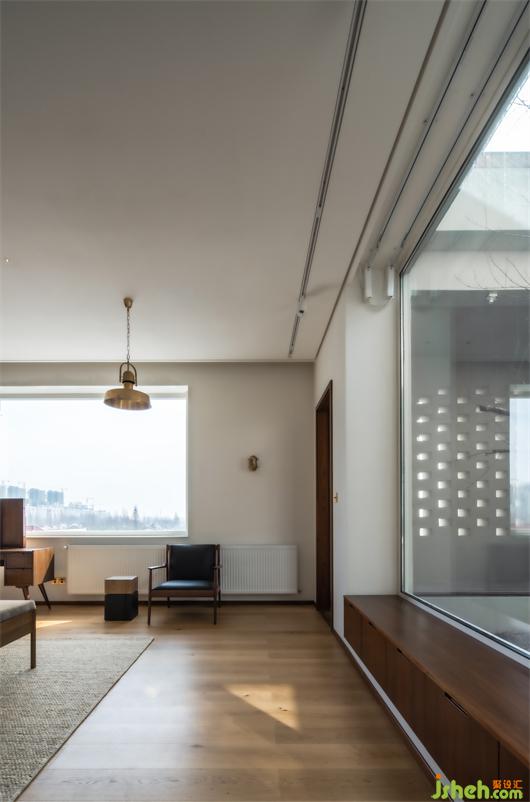 五樓、六樓專為婚房設(shè)計,具有獨立性。六樓前端樓板局部打開,形成復(fù)式空間,別墅設(shè)計通過旋轉(zhuǎn)樓梯相連接,建立了新的對話關(guān)系。六樓后端樓板被拆除后形成了下沉式空中庭院,一樹一木一世界,模糊了室外環(huán)境與室內(nèi)空間的邊界,居住空間產(chǎn)生別樣的自然靈韻與禪意,勾勒出靜謐悠閑的居家環(huán)境。