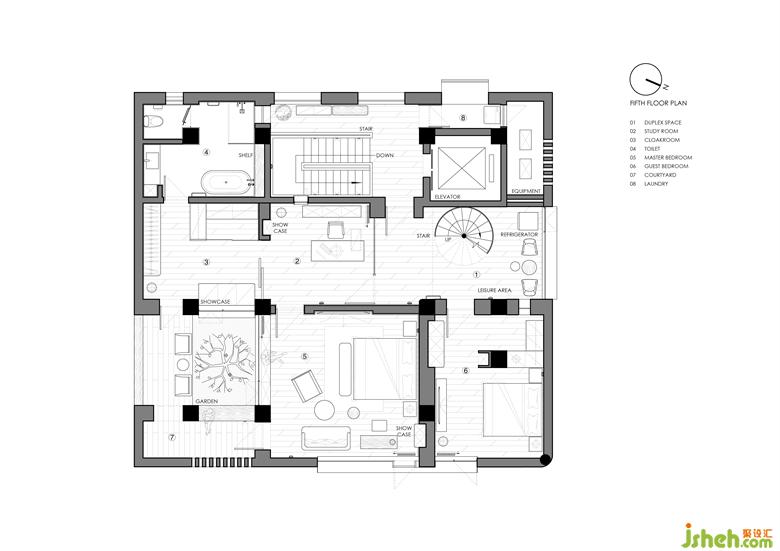 五層平面圖,F(xiàn)loor plan of fifth floor: ©本哲建筑