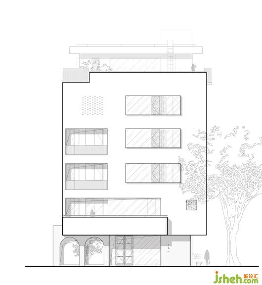 五六層剖面圖,a cross-section of five or six floors: ©本哲建筑