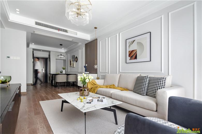 多種材質(zhì)的運(yùn)用讓空間層次感更加豐富,科定板,晶瓷畫,千鳥格紋樣等無(wú)不透露出整個(gè)空間的精致感和時(shí)尚感。裝修設(shè)計(jì)