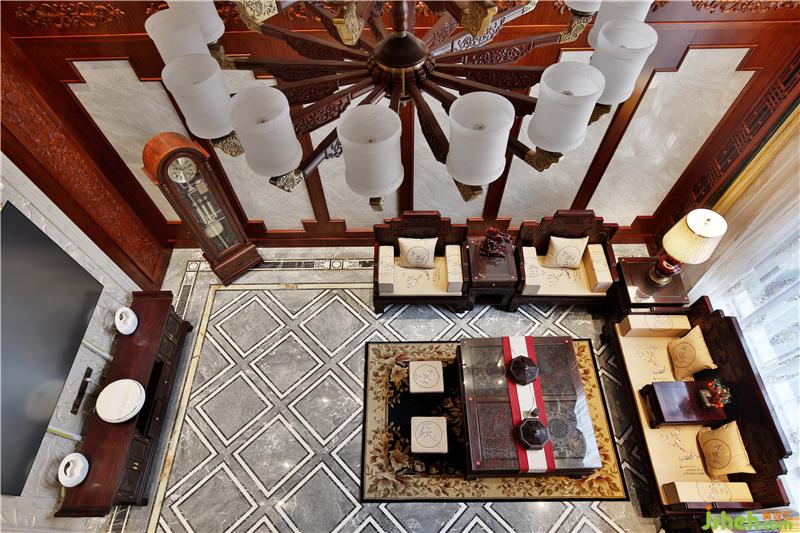 客廳極具中式風(fēng)格的配色,和中式的家具,喚醒人們深藏的記憶和文化認(rèn)同。大理石浮雕畫作背景墻,獨具東方韻味,實木古典家具充滿歷史的質(zhì)樸與厚重。裝飾燈線條干練簡潔,是古典和現(xiàn)代的結(jié)合。