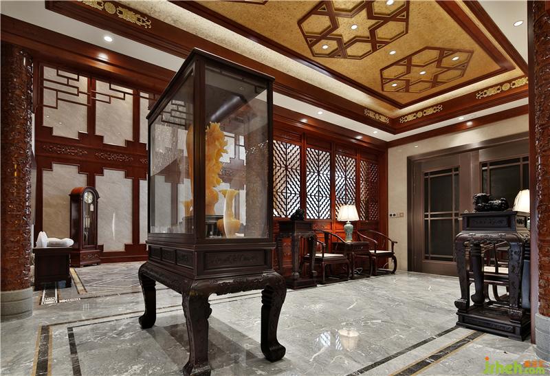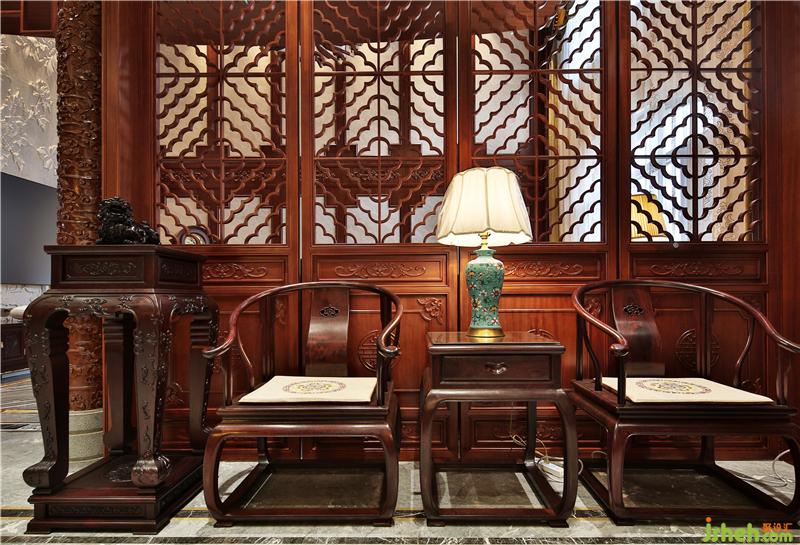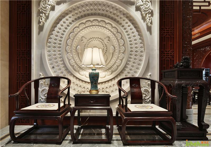 浮雕屏風(fēng)透露著高貴華麗,墻角的綠植和諧寧靜,文人雅興,相映成趣。