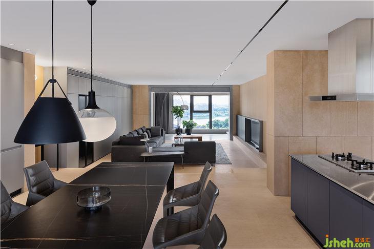 以米色系作為主色調(diào),將法國大理石構(gòu)筑了簡約而優(yōu)雅的空間氣質(zhì),賦予設(shè)計更多的自然屬性。其用色也層次分明,陳設(shè)家具風格現(xiàn)代極簡,黑色擺件和原木裝飾則增添了一分藝術(shù)氣息。