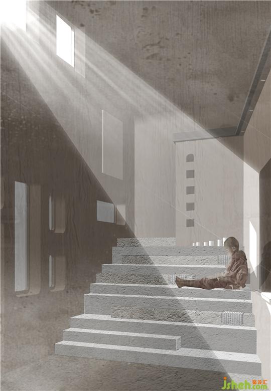 最后,從精神層面去思考,這樣的空間,將賦予什么樣的意義?又將帶給我們設(shè)計師怎樣的思考呢?其實這是我們在做這樣一個公益項目中,最應(yīng)該去思考的問題?!霸诘丶葱扌小笔俏覀冊谏疃攘私庠诘毓ぷ髡咧?,總結(jié)出來的一個定義。古有供養(yǎng)者、僧人在此修行、開鑿修建佛窟。今天有學(xué)者、志愿者在此弘揚、保護榆林石窟文化。雖然性質(zhì)產(chǎn)生了不小的變化,但我們認為,不變的都是自己的那一份信仰,是這份信仰讓他們堅持在這里長期的扎根,甚至奉獻出自己的一生。而這便是最難能可貴的精神。于是,我們希望把“在地即修行”的理念灌輸其中。除了在空間形態(tài)上,它既如榆林窟的整體面貌;進入空間的過程中,先低后敞的形式,也是在致敬榆林佛窟的建筑形式。