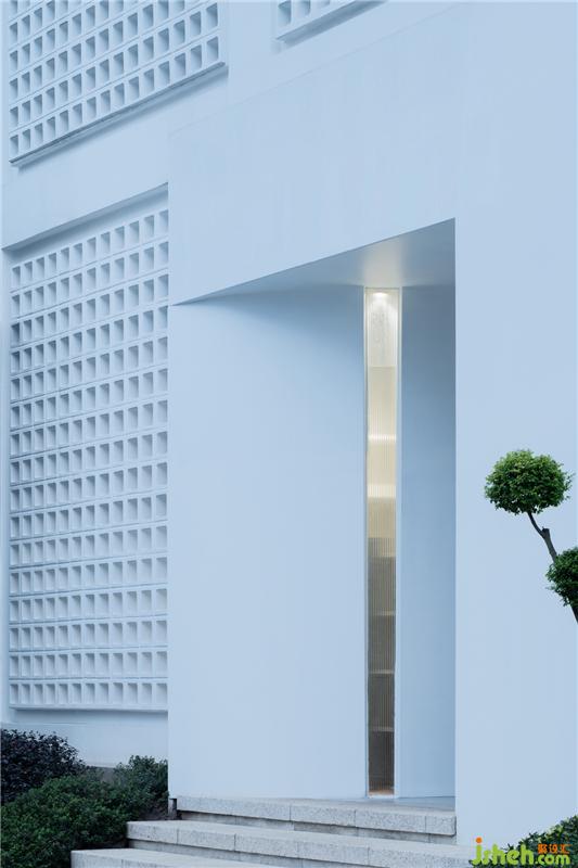 橫向外立面用空心磚搭建方式處理,就像在盒子上開一些小洞,巧妙的引入自然光,為整個(gè)室內(nèi)空間帶來出其不意的效果。