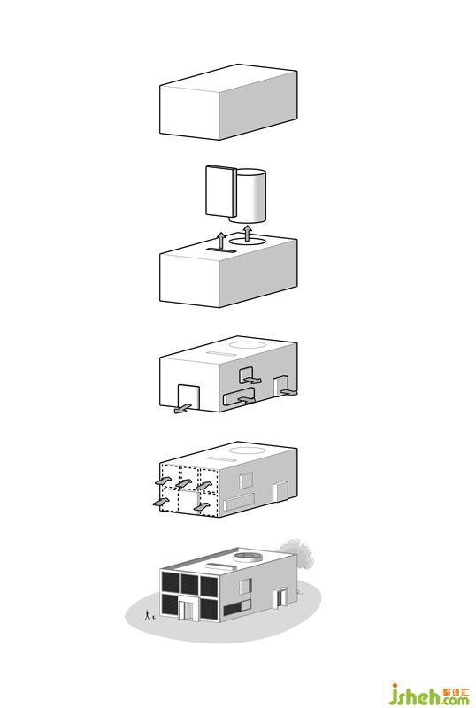 立方體既是一個(gè)單一且純粹的幾何形體,也是現(xiàn)代理性覺醒之后,建筑最原初的形態(tài)。它做為一個(gè)空間體塊,同時(shí)具備有完美的構(gòu)建與被構(gòu)建的雙向能力,它可以被理解為最小的空間單位,也可以被無限的立方體空間繼續(xù)細(xì)分下去,在方盒之中,一種現(xiàn)代秩序的象征性空間表達(dá)正在等待被輸出。