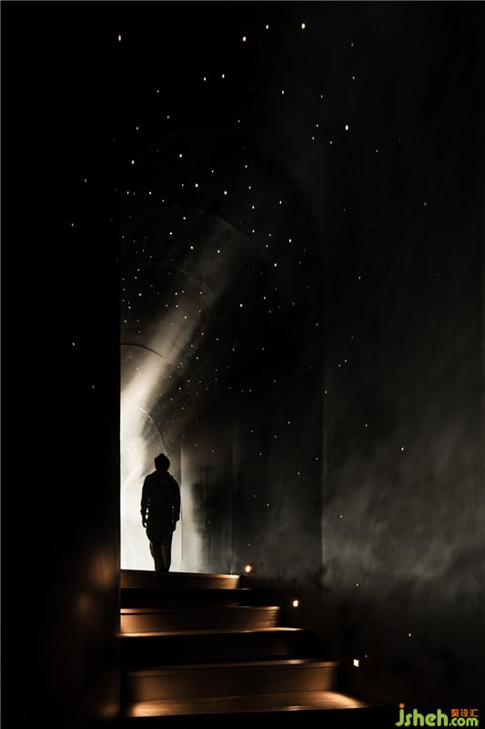 連接一層與二層的封閉式甬道,是黑暗的,作為空間的轉(zhuǎn)換、停頓乃至懸置,是空間行為關(guān)系中更深層次的體驗,因為除了太陽,黑夜里的群星同樣滋養(yǎng)我們的夢想。