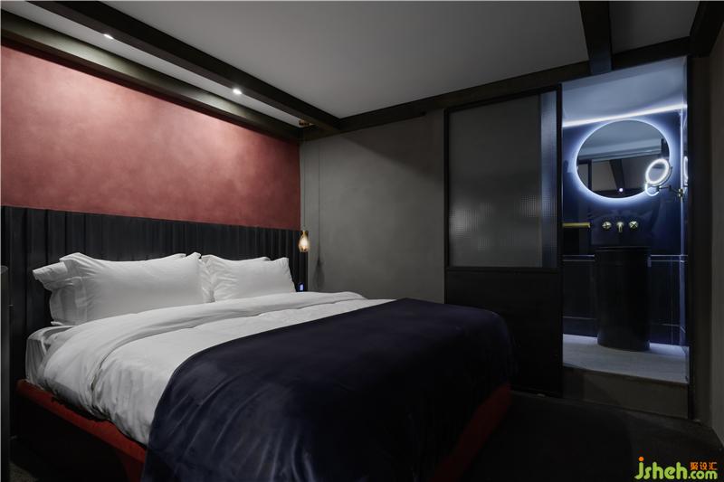 酒店就在這樣一個大環(huán)境之中,隱藏于樓宇之間。它原始的建筑狀況跟大多數(shù)的loft公寓一樣,雖然有較為充裕的層高關(guān)系,但整體空間仍然狹小。再加上酒店部分只占整層樓的3/5面積,所以,在處理空間關(guān)系上,我們必須解決酒店在視覺與空間使用動線上的獨立性。以此幫助酒店呈現(xiàn)出更加完整的視覺與體驗效果。好在較高的樓層關(guān)系給整個建筑創(chuàng)造了良好且充足的日照條件,這為后期的效果呈現(xiàn)給予了一定的幫助。